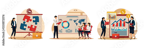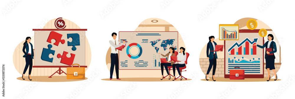 The watermark will not be included on Wall mural.: Presentation board - project closure - analyzing graphs and financial data -