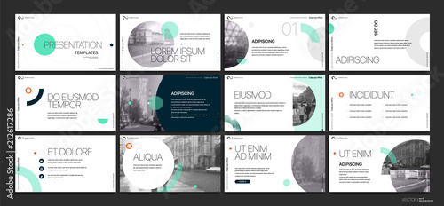 Wall mural : Presentation template - green geometric elements for slide presentations on a white background - use a