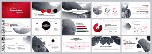 The watermark will not be included on Wall mural.: Presentation template - red elements for slide presentations on a white background - use also as a fly