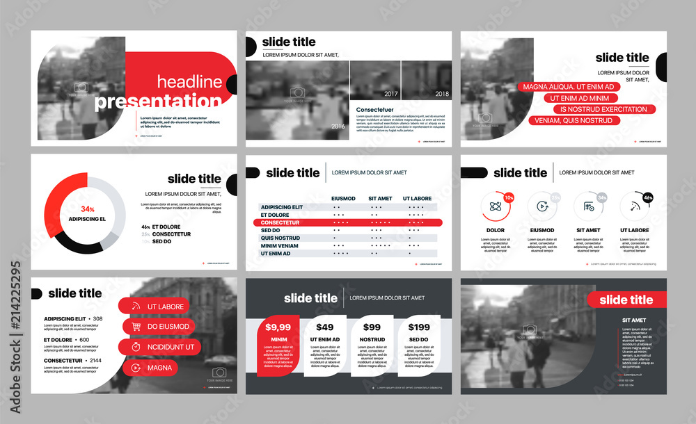 The watermark will not be included on Wall mural.: Presentation template - red geometric elements for slide presentations on a white background -