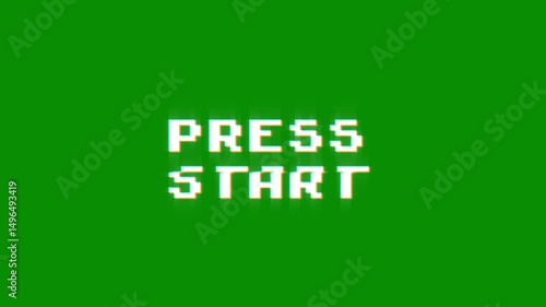 Wall mural press start 8-bit pixel text animation with dynamic glitch distortion effect. dynamic motion video g