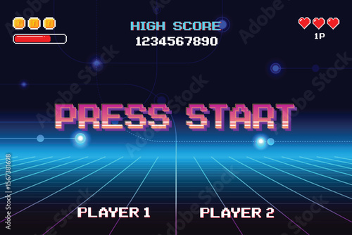 The watermark will not be included on Wall mural.: Press start insert a coin to continue - pixel art - 8 bit game - retro game - for game assets - retro fut