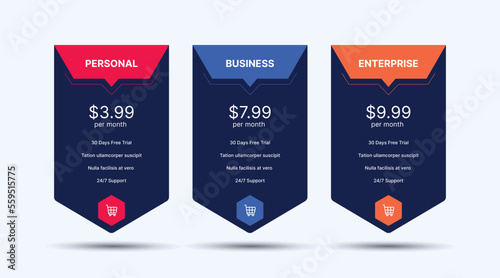 Wall mural pricing table design template for websites, pricing table design, hosting table banner