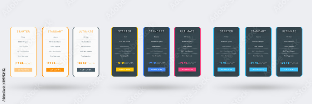 Wall mural pricing table design template for websites and applications. set of three different color variations - Wall murals Wall mural pricing table design template for websites and applications. set of three different color variations - Wall murals