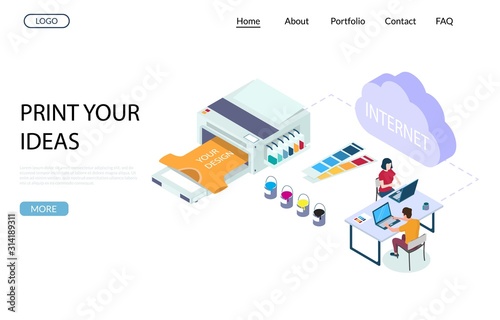The watermark will not be included on Wall mural.: Print shop services vector website landing page design template