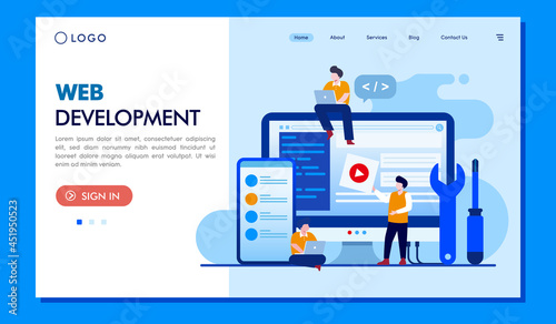 Wall mural : Printweb development - programming languages - css, html, it, ui - programmer cartoon character develop