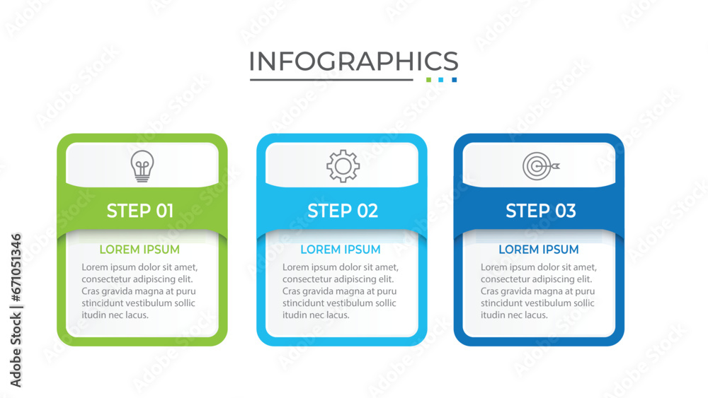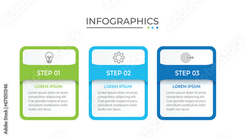 The watermark will not be included on Wall mural.: Process business infographic thin line with square template design with icons and 3 options or steps