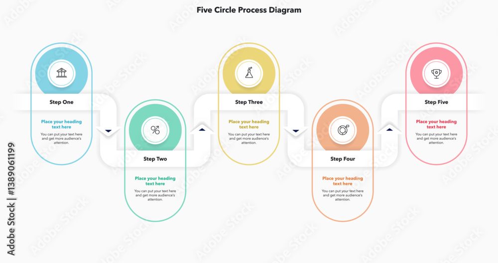 Wall mural process flow chart with five colorful steps and a place for your text. simple infographic design wit - Wall murals Wall mural process flow chart with five colorful steps and a place for your text. simple infographic design wit - Wall murals