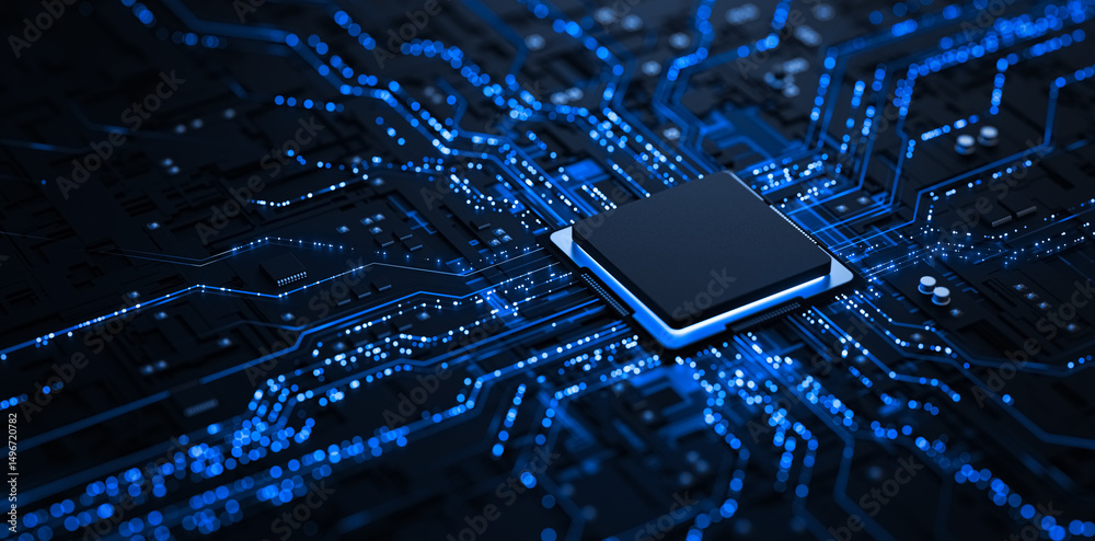 The watermark will not be included on Wall mural.: Processor chip on circuit board with copy space for design
