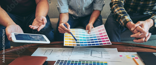 Wall mural professional creative team of web/graphic designer planning, drawing website ux app for mobile phone - Wall murals Wall mural professional creative team of web/graphic designer planning, drawing website ux app for mobile phone - Wall murals