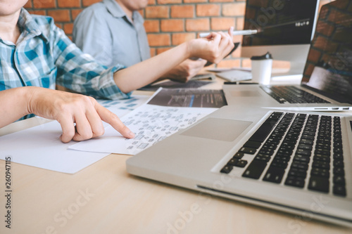 The watermark will not be included on Wall mural.: Professional developer programmer cooperation meeting and brainstorming and programming in website w