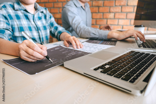 The watermark will not be included on Wall mural.: Professional developer programmer cooperation meeting and brainstorming and programming in website w