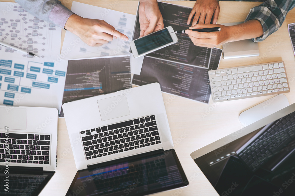 Wall mural : Professional developer programmer cooperation meeting and brainstorming and programming in website w