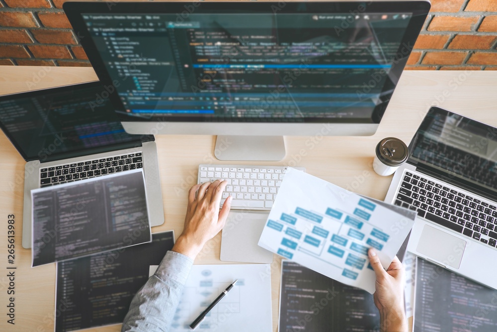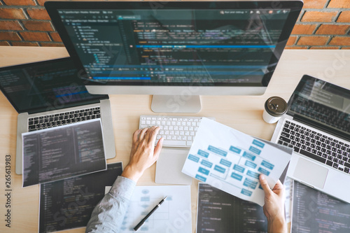 Wall mural professional developer programmer working a software website design and coding technology, writing c
