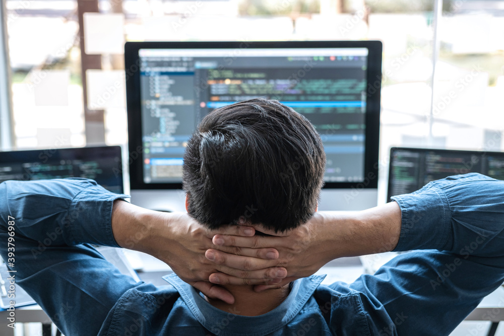 Wall mural professional development programmer working in programming website a software and coding technology, - Wall murals Wall mural professional development programmer working in programming website a software and coding technology, - Wall murals