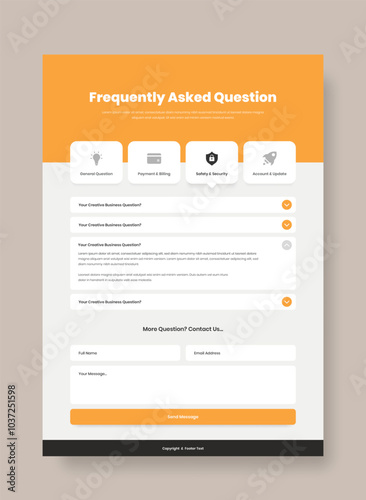 Wall mural : Professional frequently asked question or faq page web interface design with contact form