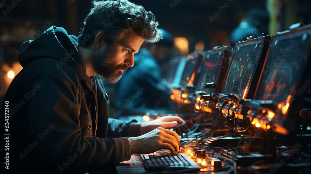 The watermark will not be included on Wall mural.: Professional it specialist using device writing code - generative ai
