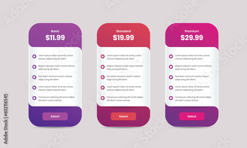 Wall mural : Professional pricing comparison table design with colorful gradient for business and service subscri