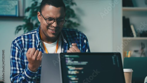 Wall mural : Professional programmer happy with successful project completion, gesturing yes