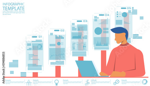 Wall mural : Professionals analyzing graphs - online stock trading - design template application interface with flat