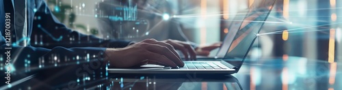 Wall mural : Professionals in a techsavvy office use laptops to create a digital work environment with communicat