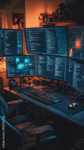 Wall mural proficient developer masterfully navigates cloud in streamlined workspace - Wall murals Wall mural proficient developer masterfully navigates cloud in streamlined workspace - Wall murals