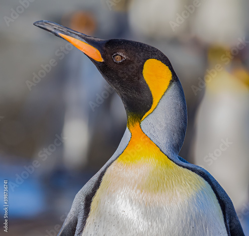 Wall mural : Profile facing left of king penguin with colorful breeding feathers