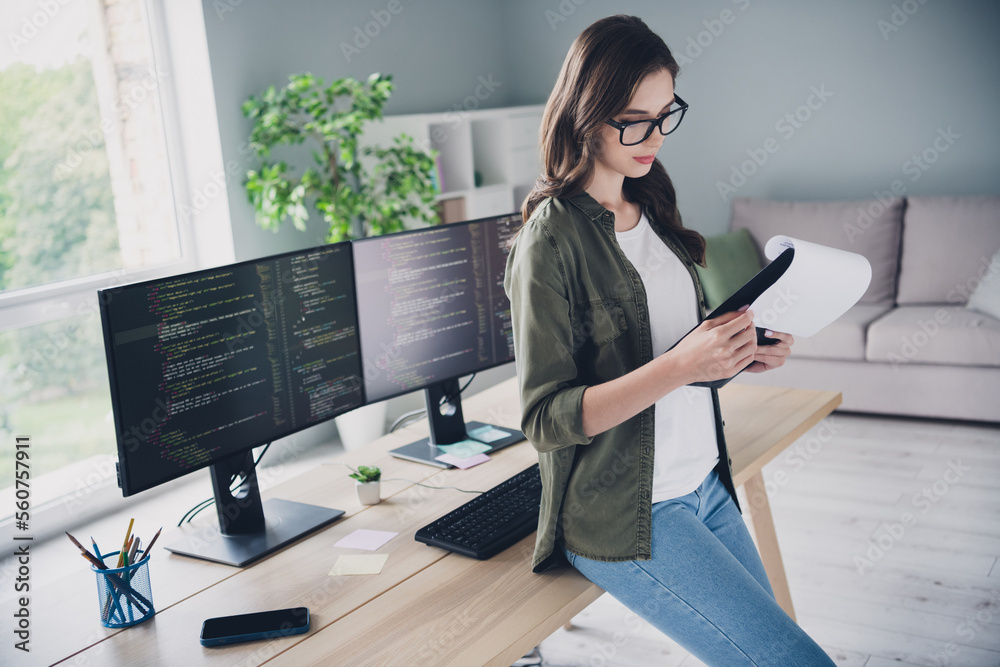 Wall mural : Profile side photo of confident professional chief read document project install upgrade operating s