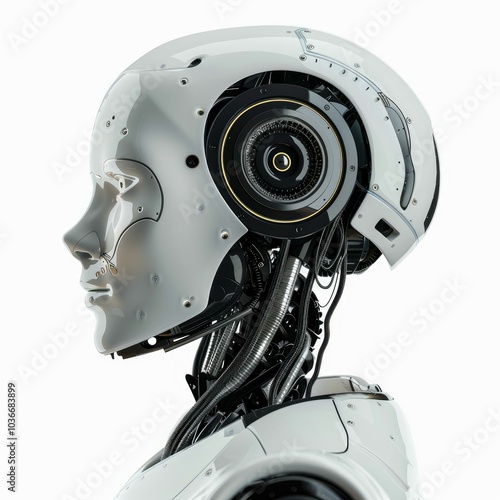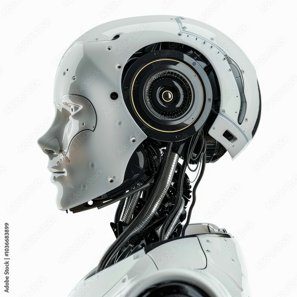 The watermark will not be included on Wall mural.: Profile view of a white and black robot showing artificial intelligence