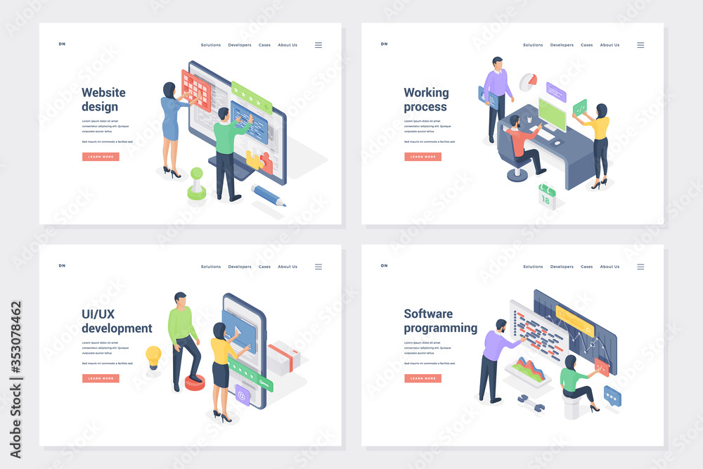 The watermark will not be included on Wall mural.: Program creation, ui, ux development isometric landing page templates set