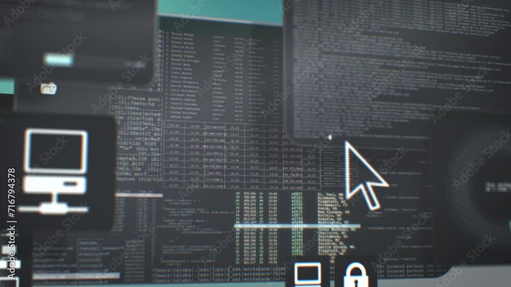 Wall mural program interface with various windows for web programming, it support, hack, cybercrime, 3d animati