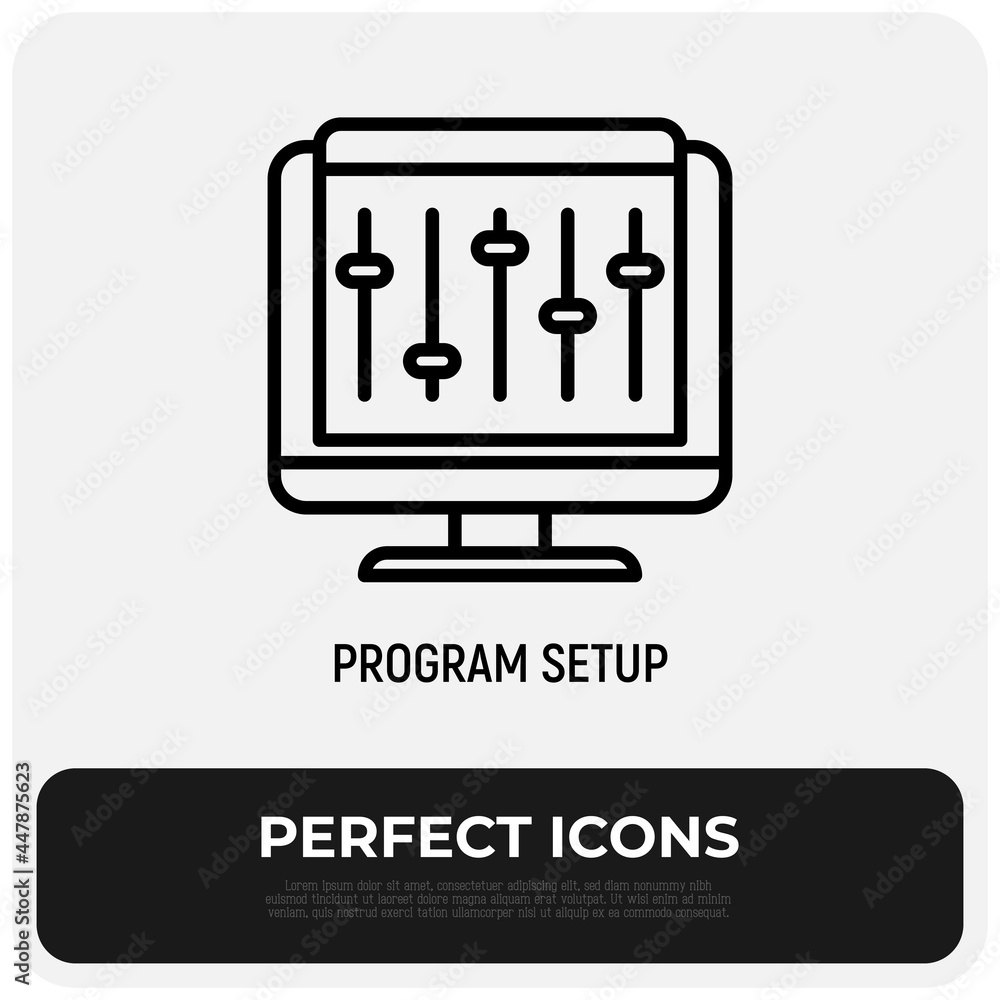 Wall mural program setup thin line icon, settings on pc. software installation. modern vector illustration. - Wall murals Wall mural program setup thin line icon, settings on pc. software installation. modern vector illustration. - Wall murals