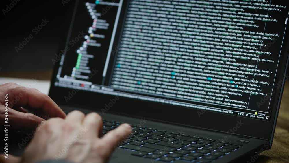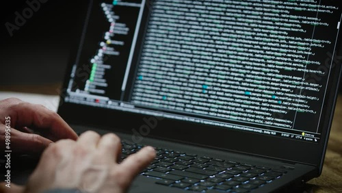 The watermark will not be included on Wall mural.: Programmer's hands and laptop keyboard close-up - the developer writes the application code