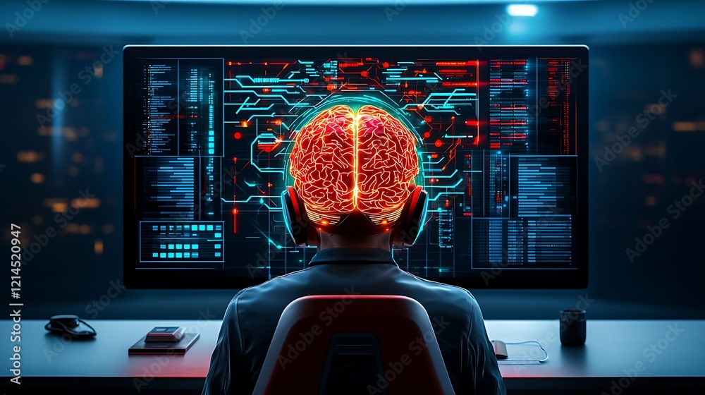 Wall mural programmer analyzing brain data on computer screen - Wall murals Wall mural programmer analyzing brain data on computer screen - Wall murals