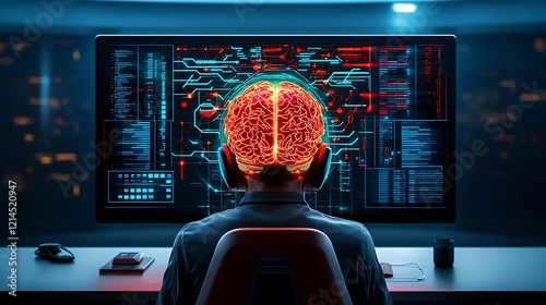 The watermark will not be included on Wall mural.: Programmer analyzing brain data on computer screen