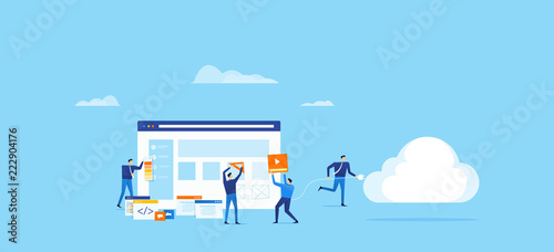 The watermark will not be included on Wall mural.: Programmer and design team develop for web application and connect to cloud computing concept with g