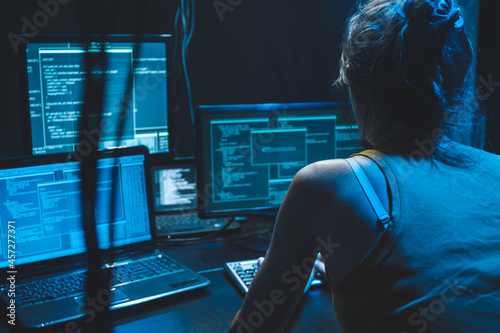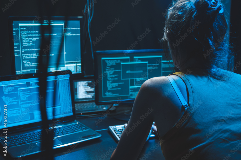 Wall mural programmer at night. develops new web desktop mobile application. software developer freelancer woma - Wall murals Wall mural programmer at night. develops new web desktop mobile application. software developer freelancer woma - Wall murals