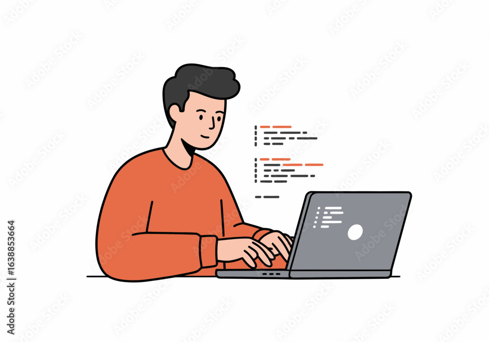 Wall mural programmer coding on laptop with code floating, software development - Wall murals Wall mural programmer coding on laptop with code floating, software development - Wall murals