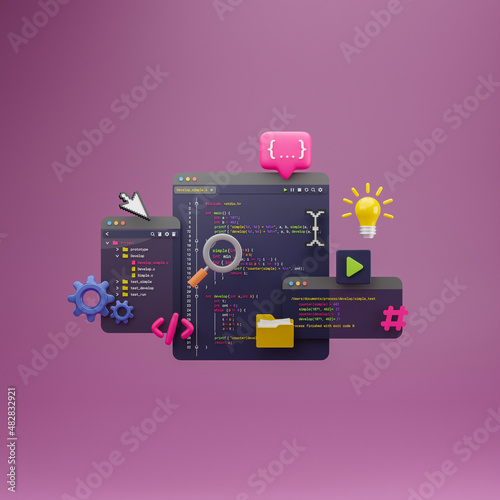 Wall mural programmer developer typing script source languages coding symbols icon development project data pro