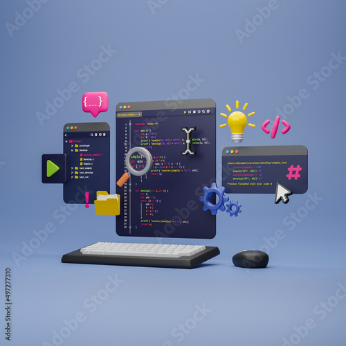 Wall mural programmer developer typing script source languages coding symbols icon development project data pro