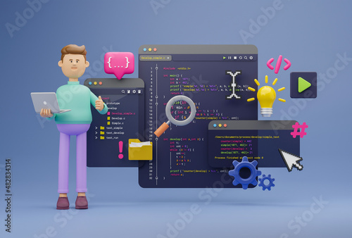 Wall mural programmer developer typing script source languages coding symbols icon development project data pro