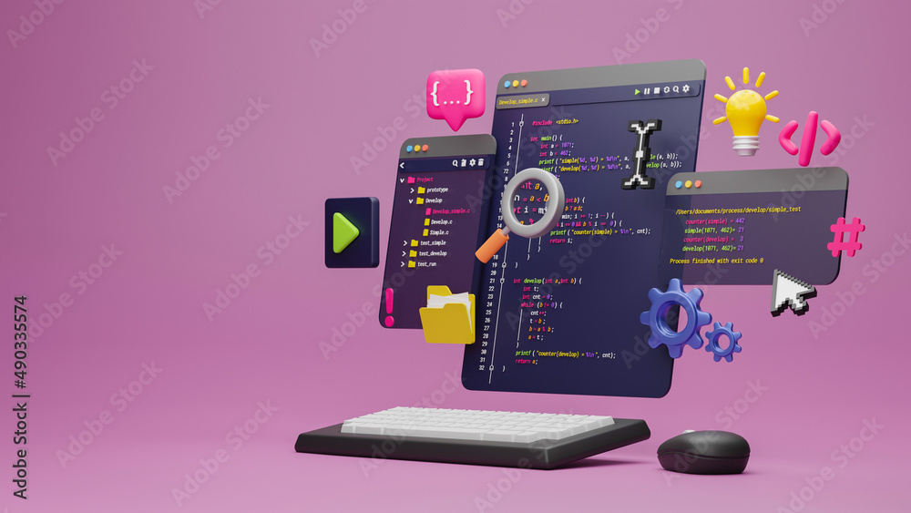 Programmer developer typing script source languages coding symbols icon development project data proWall mural