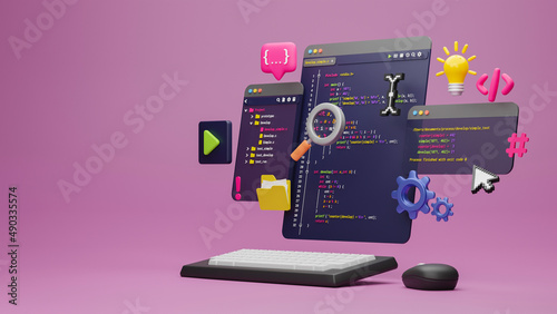 Wall mural programmer developer typing script source languages coding symbols icon development project data pro