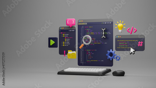 Wall mural programmer developer typing script source languages coding symbols icon development project data pro
