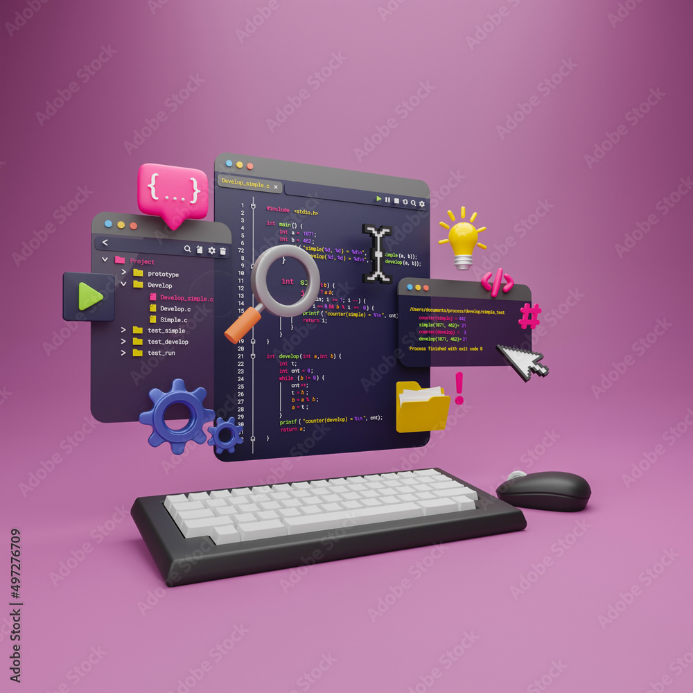 Programmer developer typing script source languages coding symbols icon development project data proWall mural