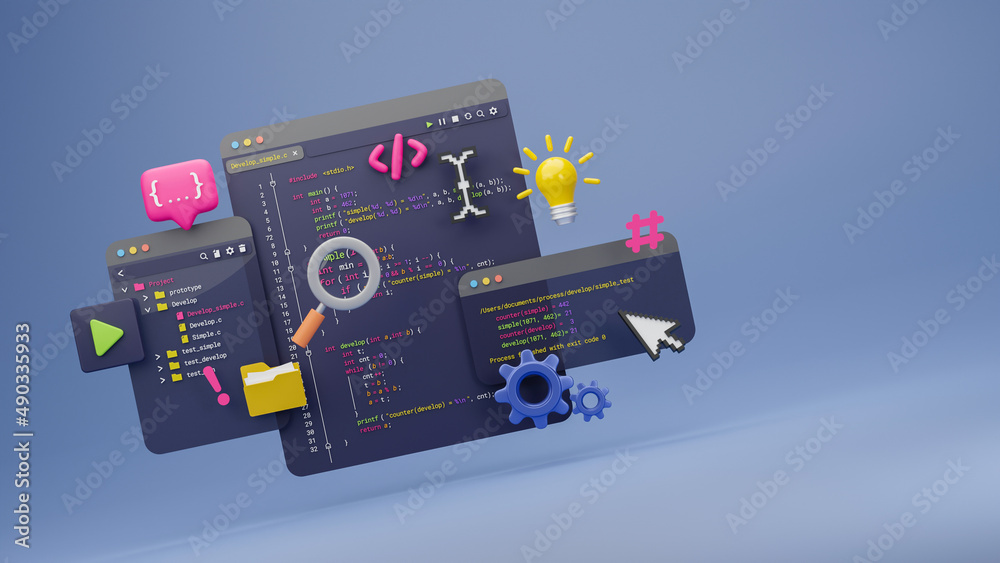 Programmer developer typing script source languages coding symbols icon development project data proWall mural
