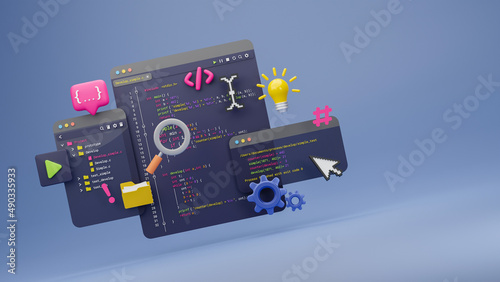 The watermark will not be included on Wall mural.: Programmer developer typing script source languages coding symbols icon development project data pro
