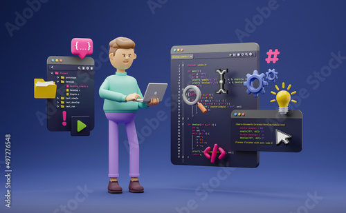 Wall mural programmer developer typing script source languages coding symbols icon development project data pro
