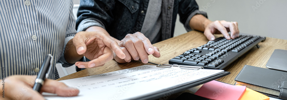 The watermark will not be included on Wall mural.: Programmer team working in a software develop company office