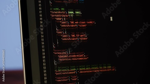 The watermark will not be included on Wall mural.: Programmer using laptop - program code and script data on the screen close-up - hacker attack -